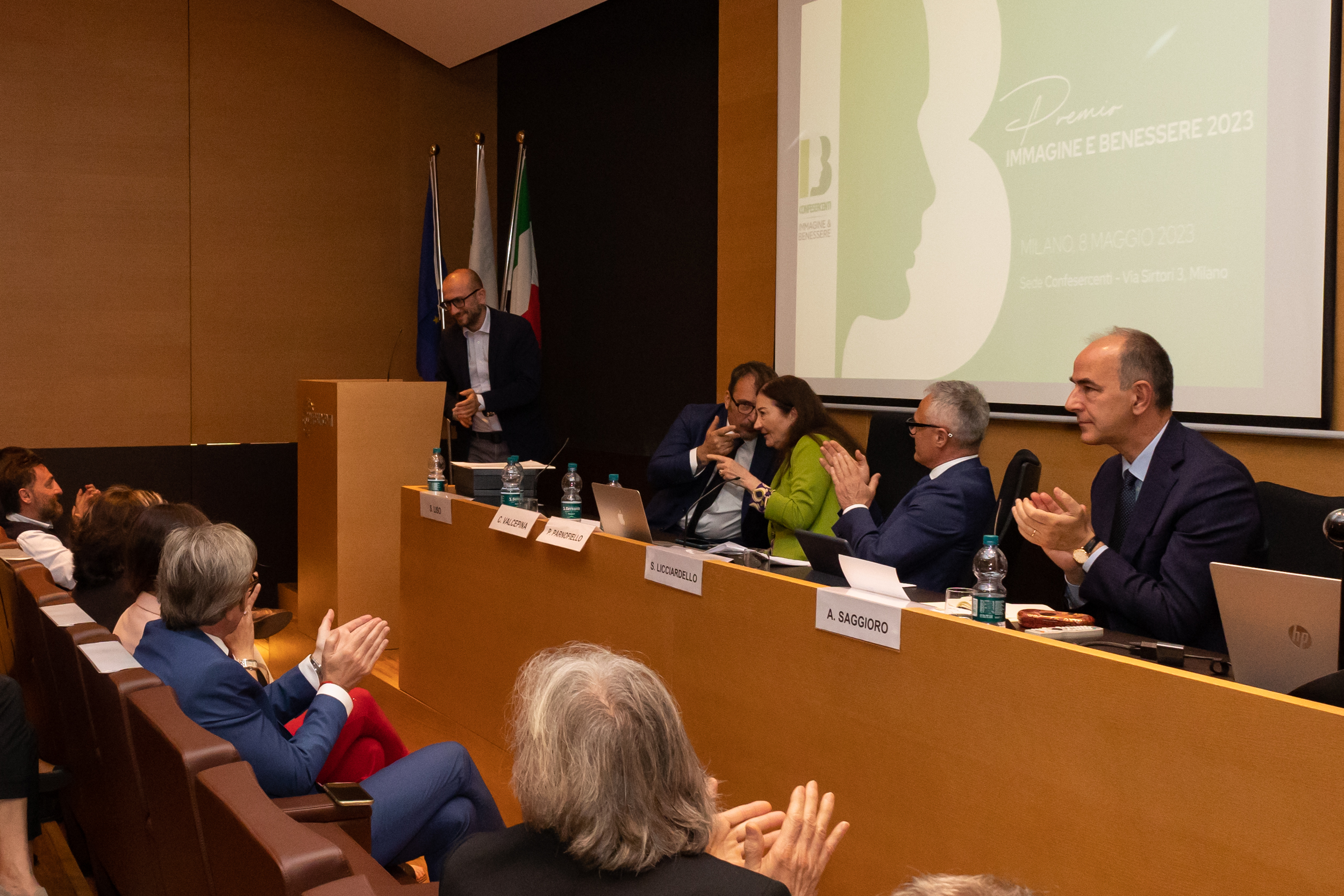 Di seguito le immagini del Convegno “Antiche professioni, nuove opportunità”, organizzato da Confesercenti Immagine e Benessere. al quale hanno partecipato in collegamento streaming Alberto Gusmeroli, Presidente della X Commissione (Attività Produttive, Commercio e Turismo) della Camera dei deputati; con un video messaggio Alessia Cappello, Assessore allo Sviluppo Economico e Politiche del Lavoro del Comune di Milano ed in presenza Chiara Valcepina, Consigliere Regionale (Commissione Attività produttive, Istruzione e Formazione) Regione Lombardia; Alessandro Saggioro, Università La Sapienza di Roma, Sebastiano Liso, Presidente Nazionale Immagine e Benessere, Andrea Painini, Presidente di Confesercenti Milano, o, Salvatore Licciardello, giornalista di Milano Finanza e Pina Parnofiello, Coordinatrice Nazionale dell’Associazione. Al termine del convegno è stato consegnato il Premio Immagine e Benessere a Marta Romagna ed Alessandro Grillo, icone dello Stile italiano nel Mondo.